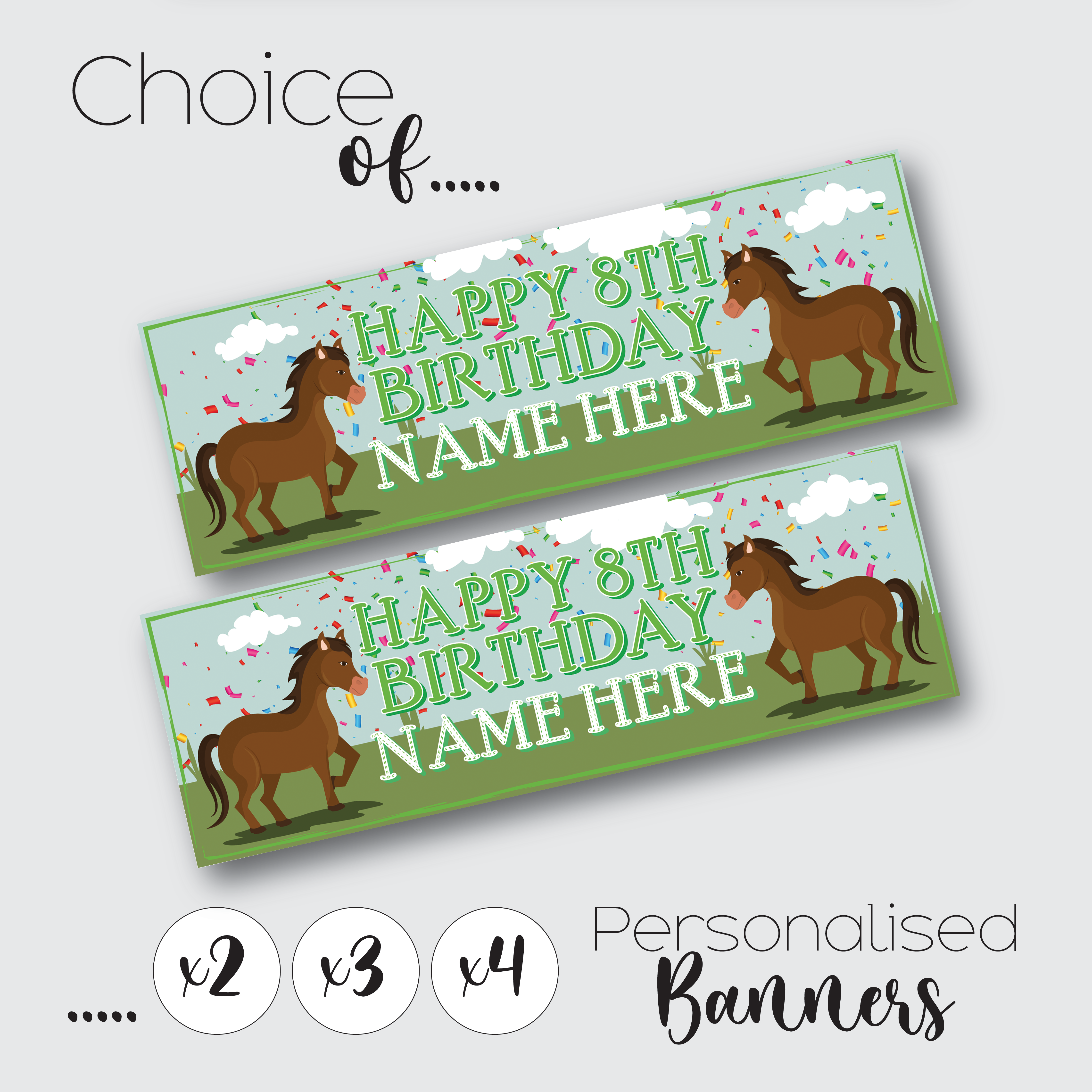Personalised Horse Birthday Banner for Kids – Custom Paper Party Decoration, Available in Sets of 2, 3 or 4