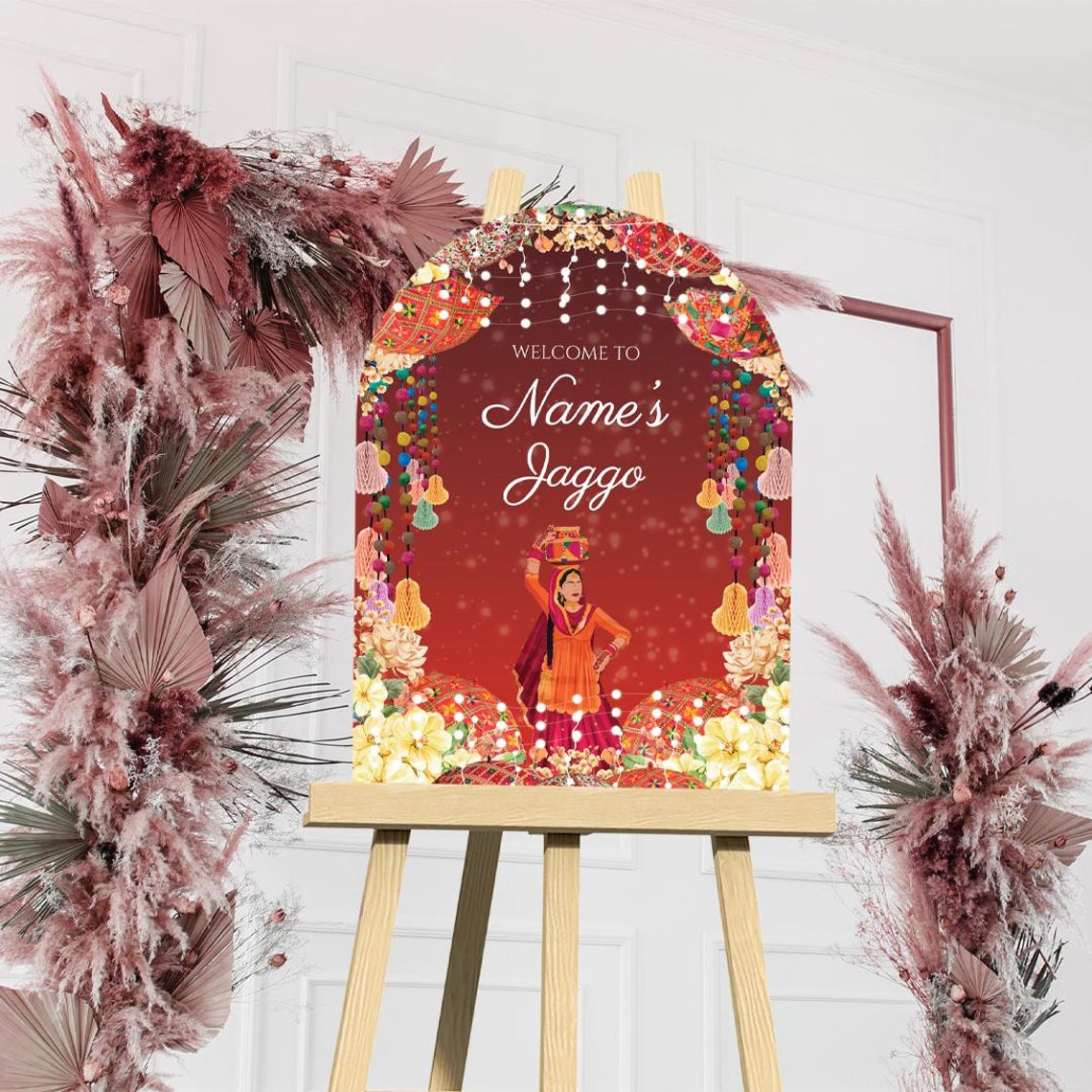 JAGGO Arch Welcome Signs Jago Signs Bollywood Desi Decor Mehndi Sign Bollywood Decor Sign Haldi Mehendi Welcome Punjabi Indian Design Sign 0385