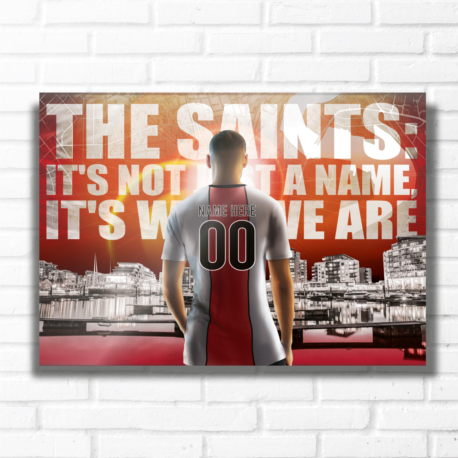PERSONALISED FOOTBALL TEAM SOUTHAMPTON RED AND WHITE Name and Number Metal Plaque Sign Studio Man-Cave Bedroom Wall Art Decor