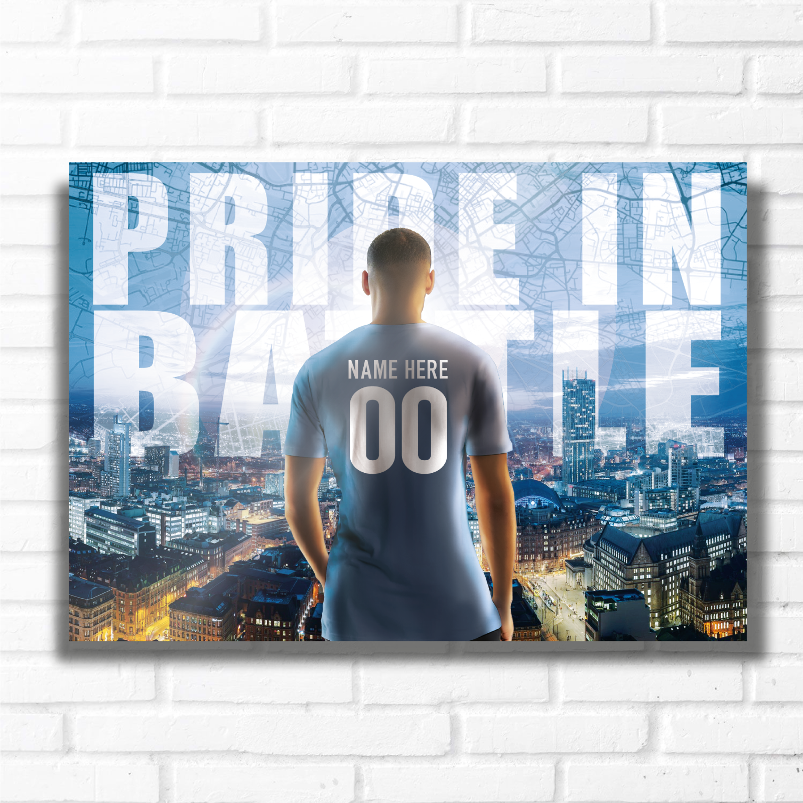 PERSONALISED FOOTBALL TEAM MANCHESTER THE BLUES Name and Number Metal Plaque Sign Studio Man-Cave Bedroom Wall Art Decor
