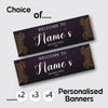 Featuring vibrant patterns inspired by traditional henna designs, these custom banners can be personalised with names, dates, or joyful messages—perfect for creating a lively, festive backdrop for your pre-wedding celebration.