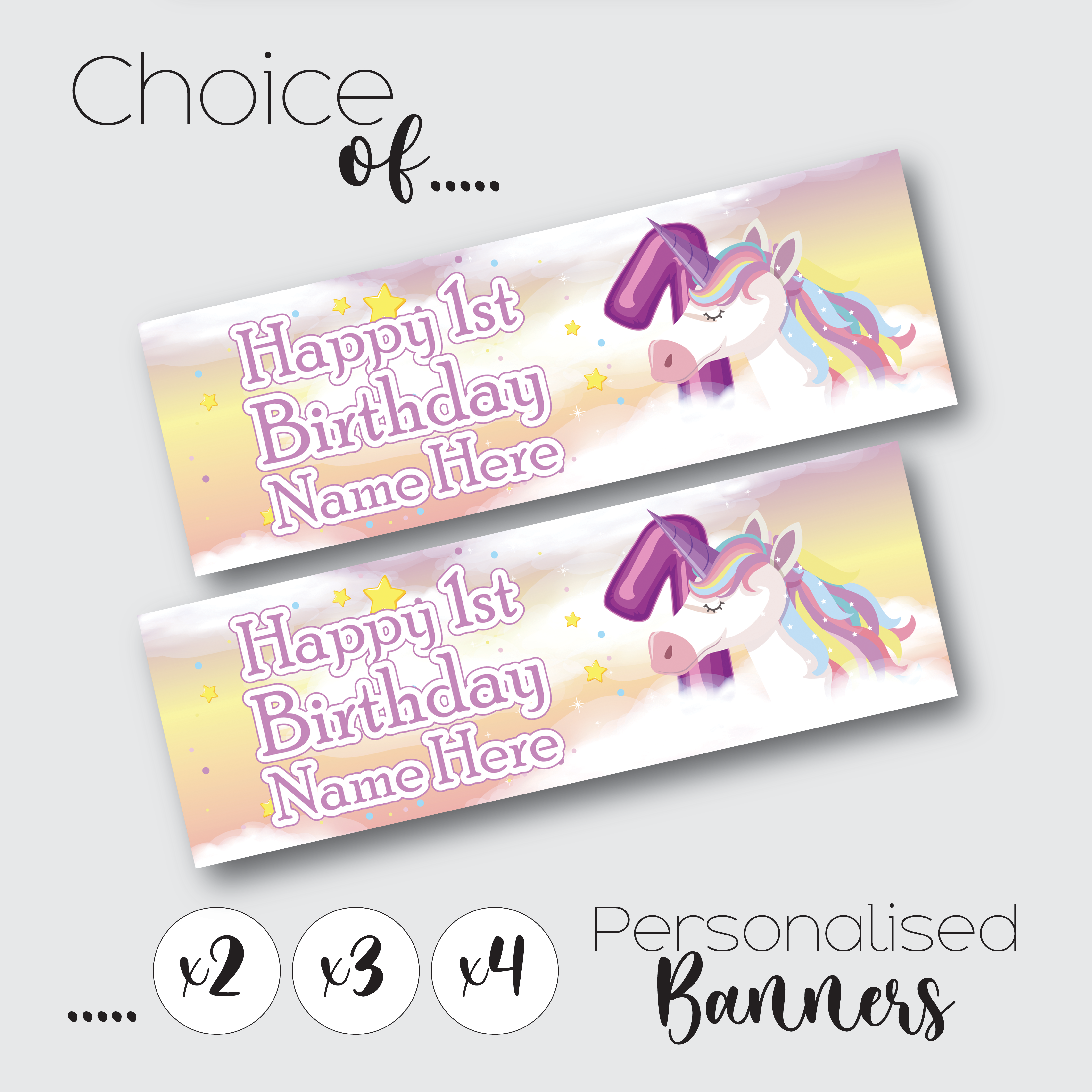 Personalised Unicorn 1st Birthday Banner for Kids, Custom Paper Party Decoration - Available in Sets of 2, 3 or 4