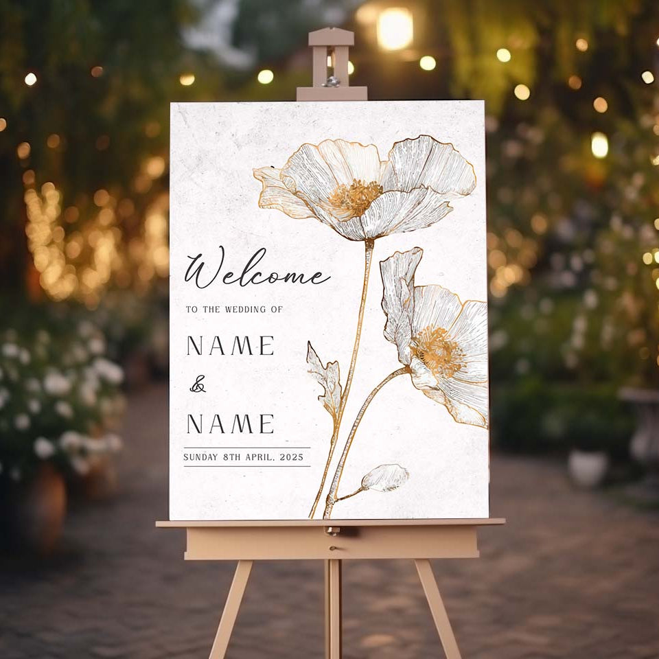 POPPY Welcome Sign, Printed Sign A1, A2, A3, A4, Welcome Sign, Personalised Wedding Welcome Sign