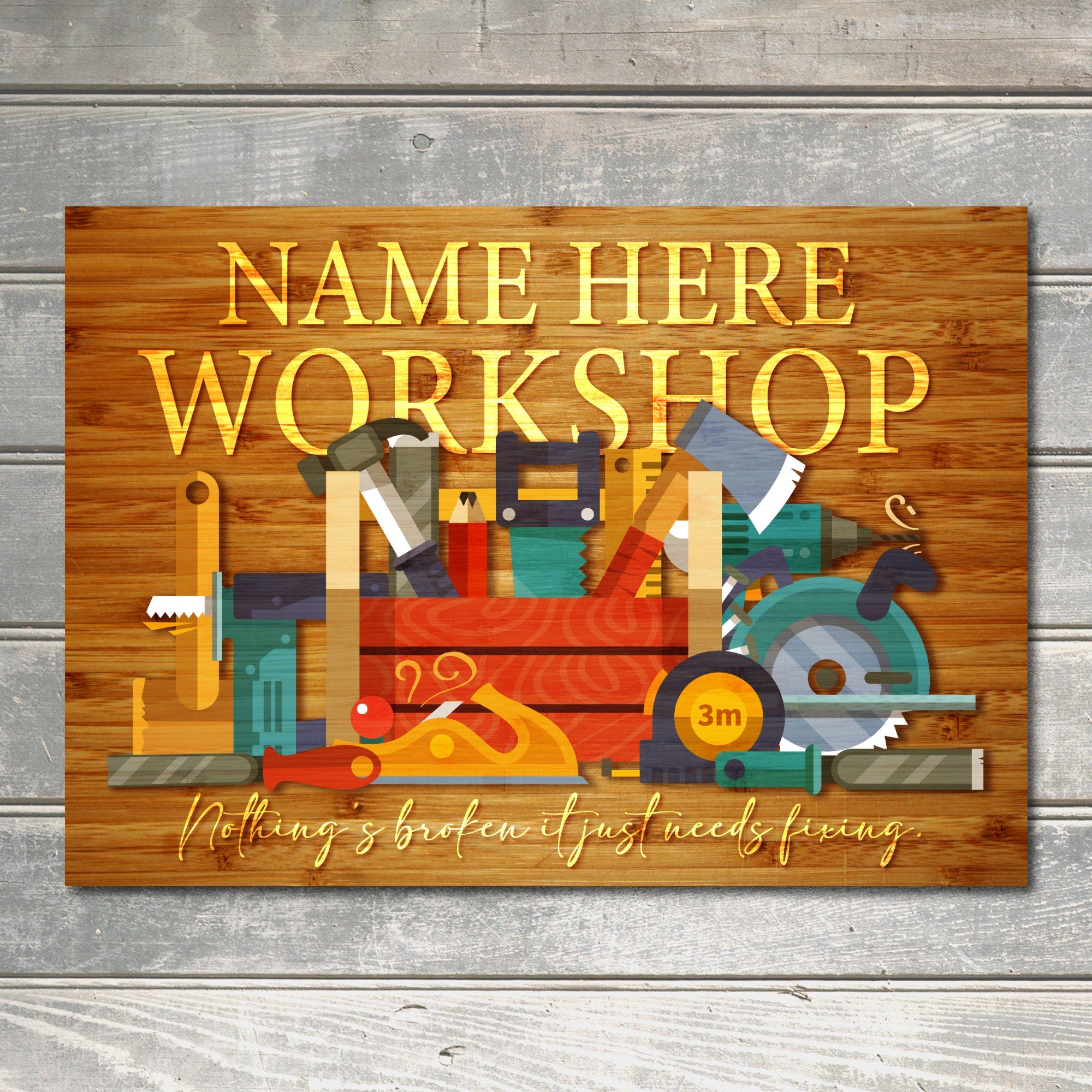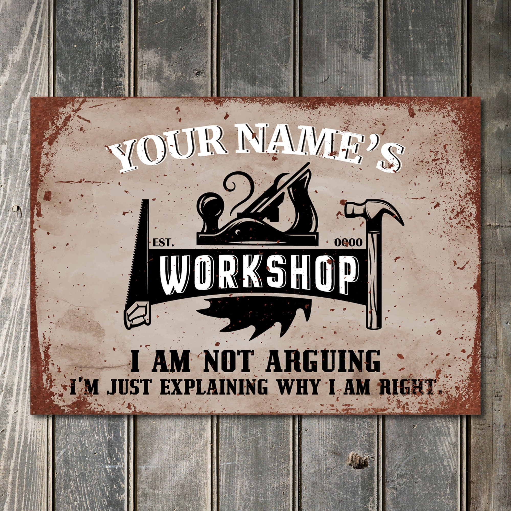 PERSONALISED Workshop Sign Shed Woodwork Gift Man Cave Custom Metal Plaque 0155