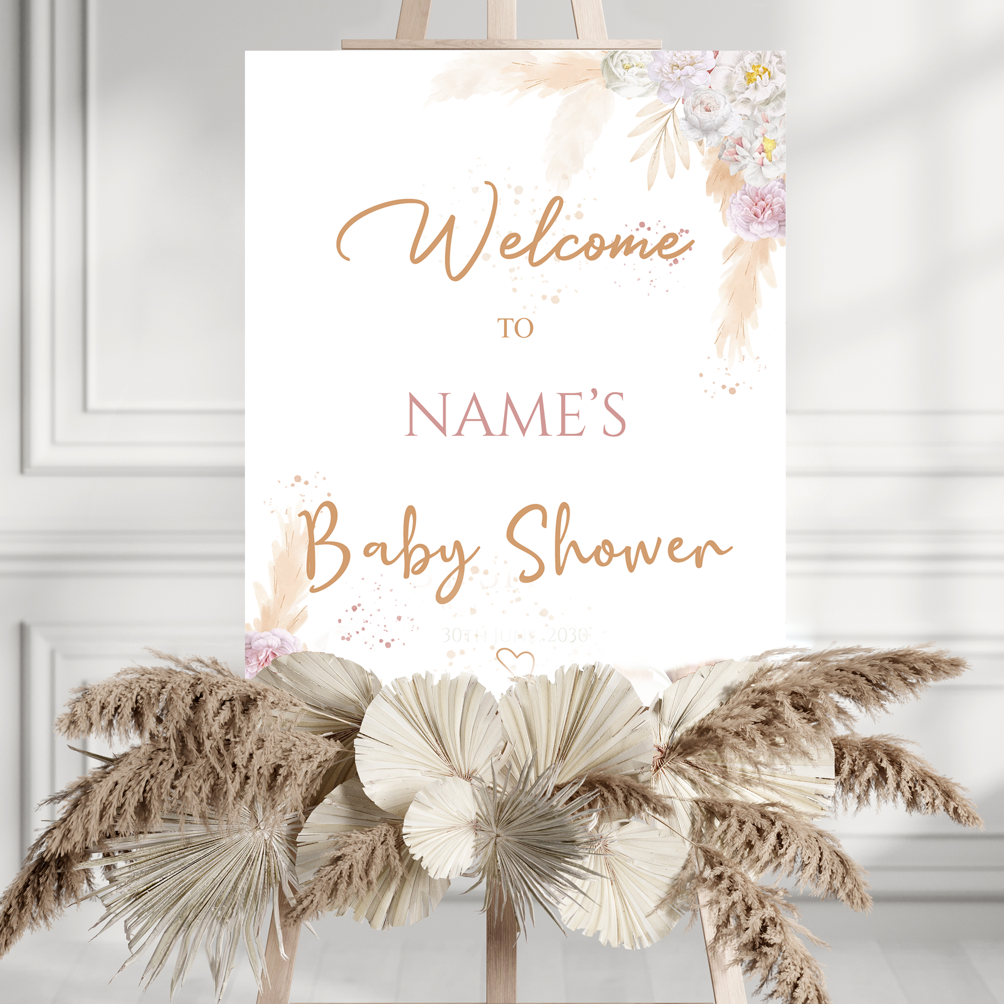 PAMPAS Baby Shower Welcome Board, A1, A2, A3 or A4, Gender Neutral Baby Shower Sign, Baby Welcome Sign, Baby Boy Baby Girl Shower, Party
