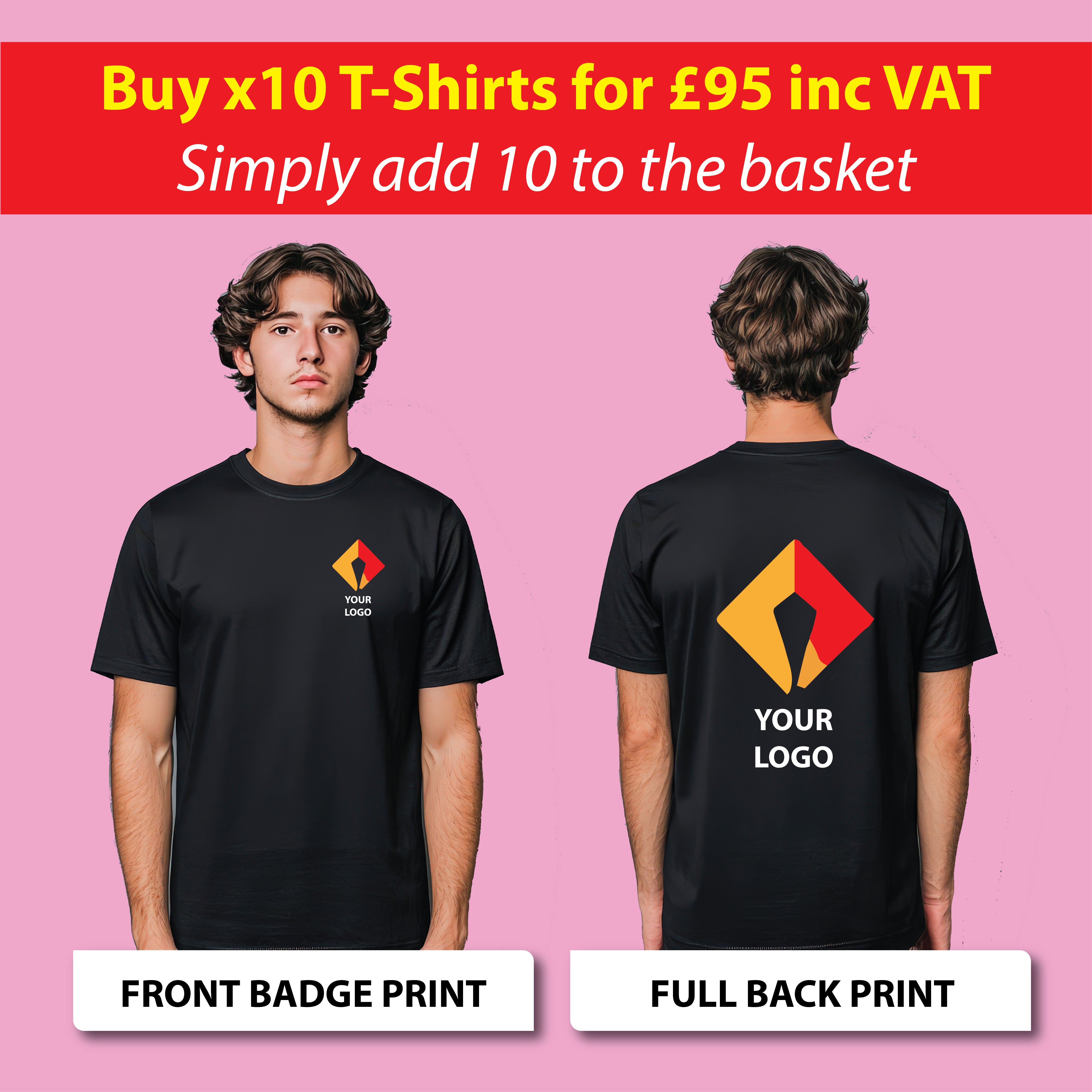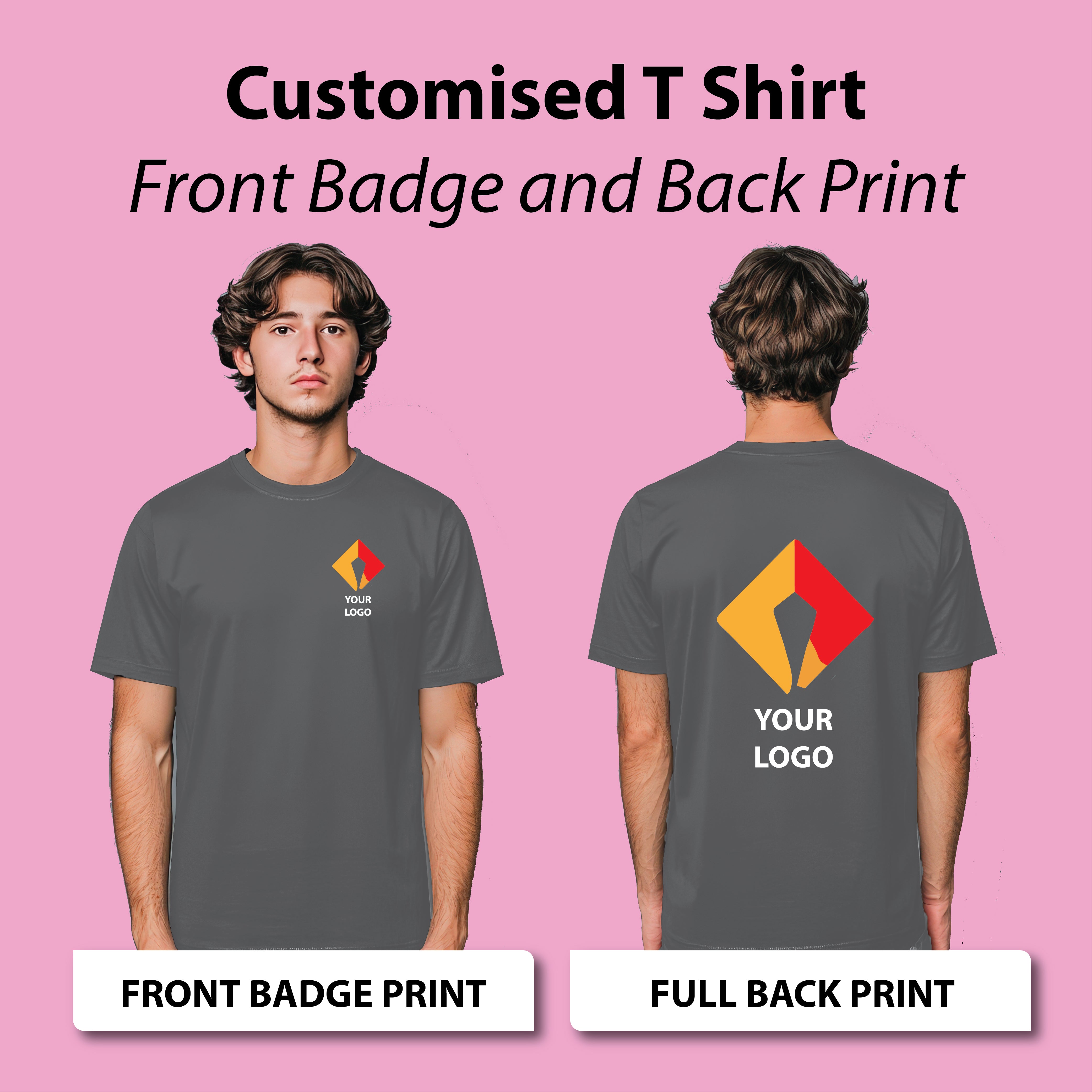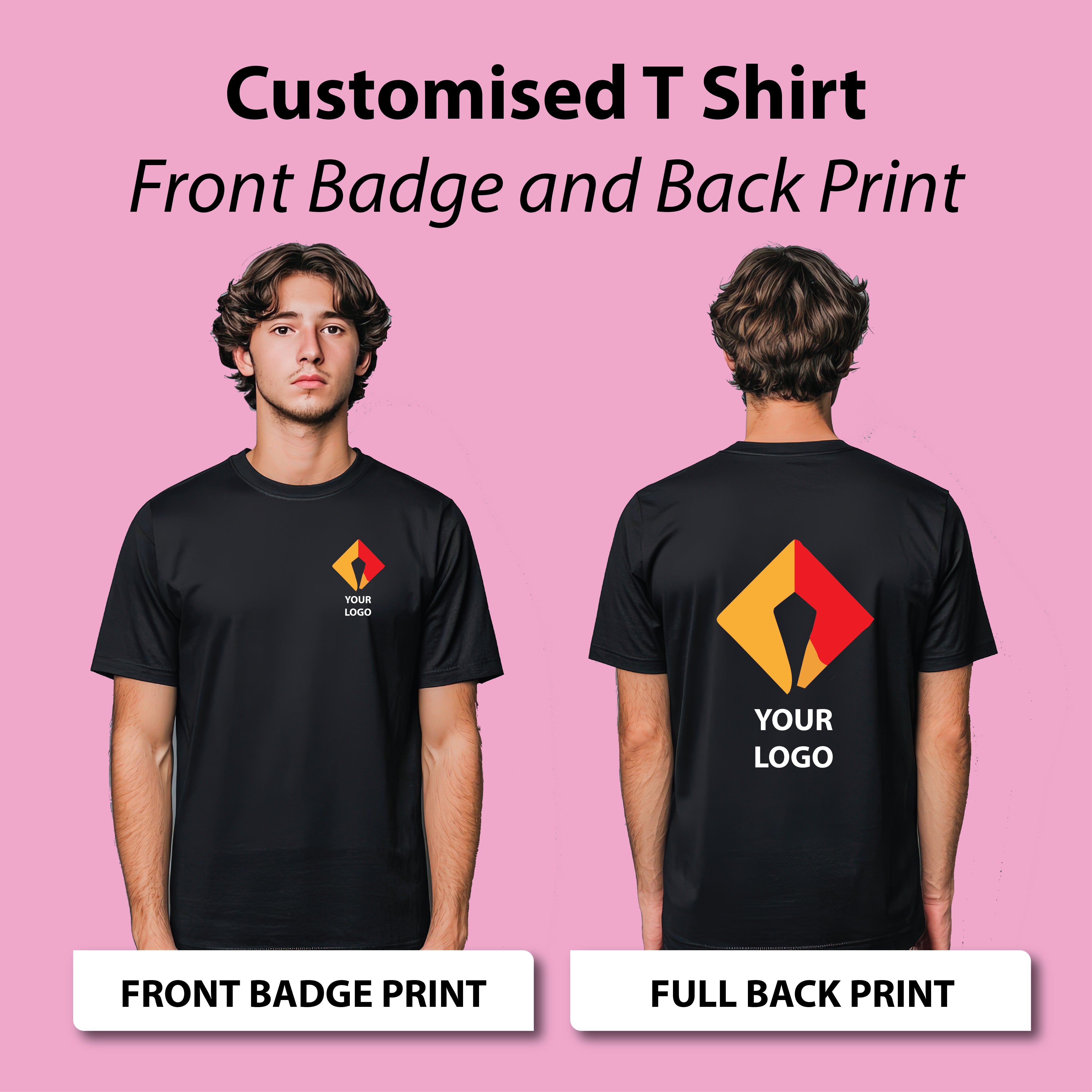 You can personalise by uploading a photo, a design you may already have, or simply have personalised text on your t shirts by entering the text in the notes box.