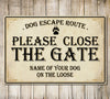 PERSONALISED Please Close the Gate Sign Dog Warning Metal Wall Door Decor Garden Plaque