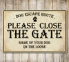 PERSONALISED Please Close the Gate Sign Dog Warning Metal Wall Door Decor Garden Plaque 0239