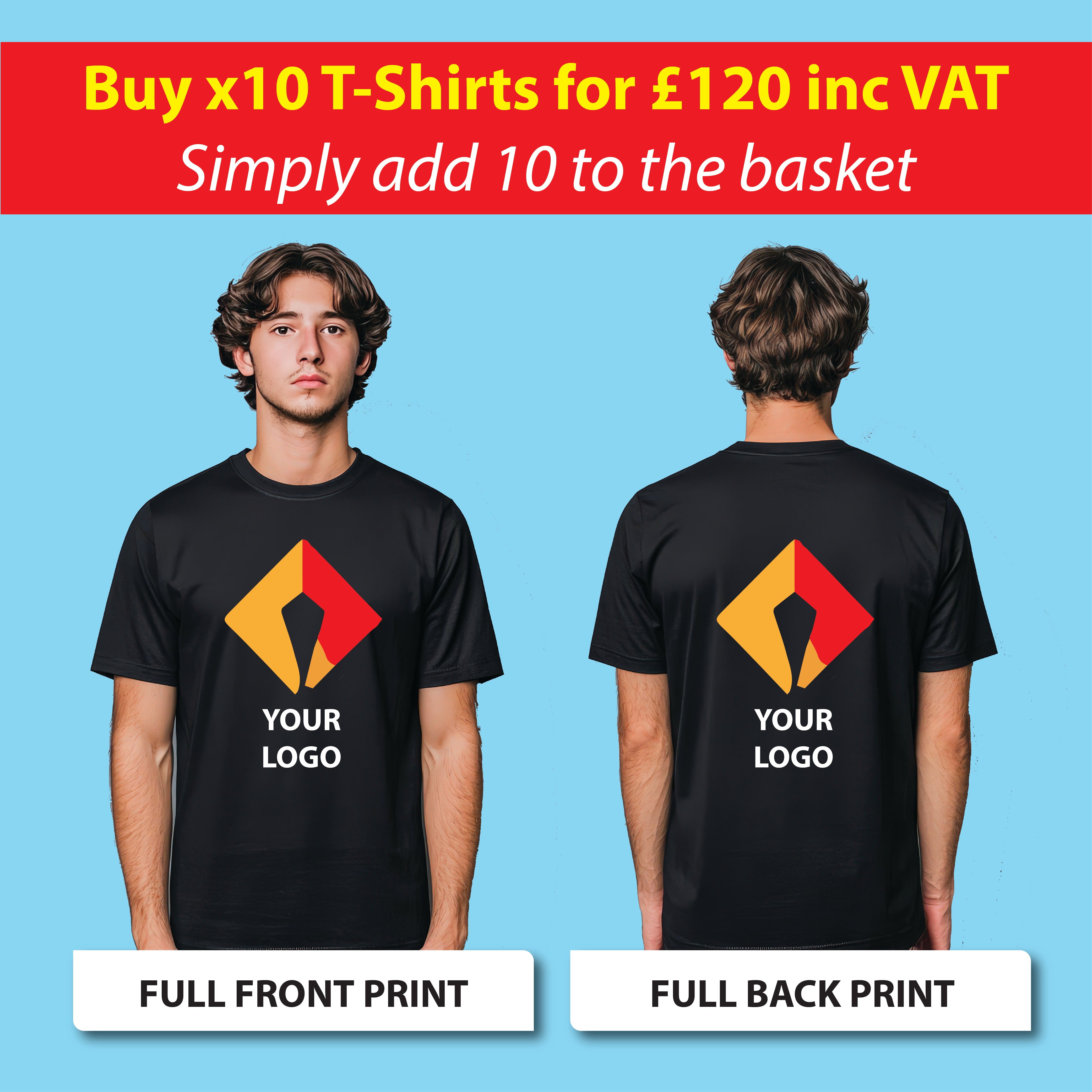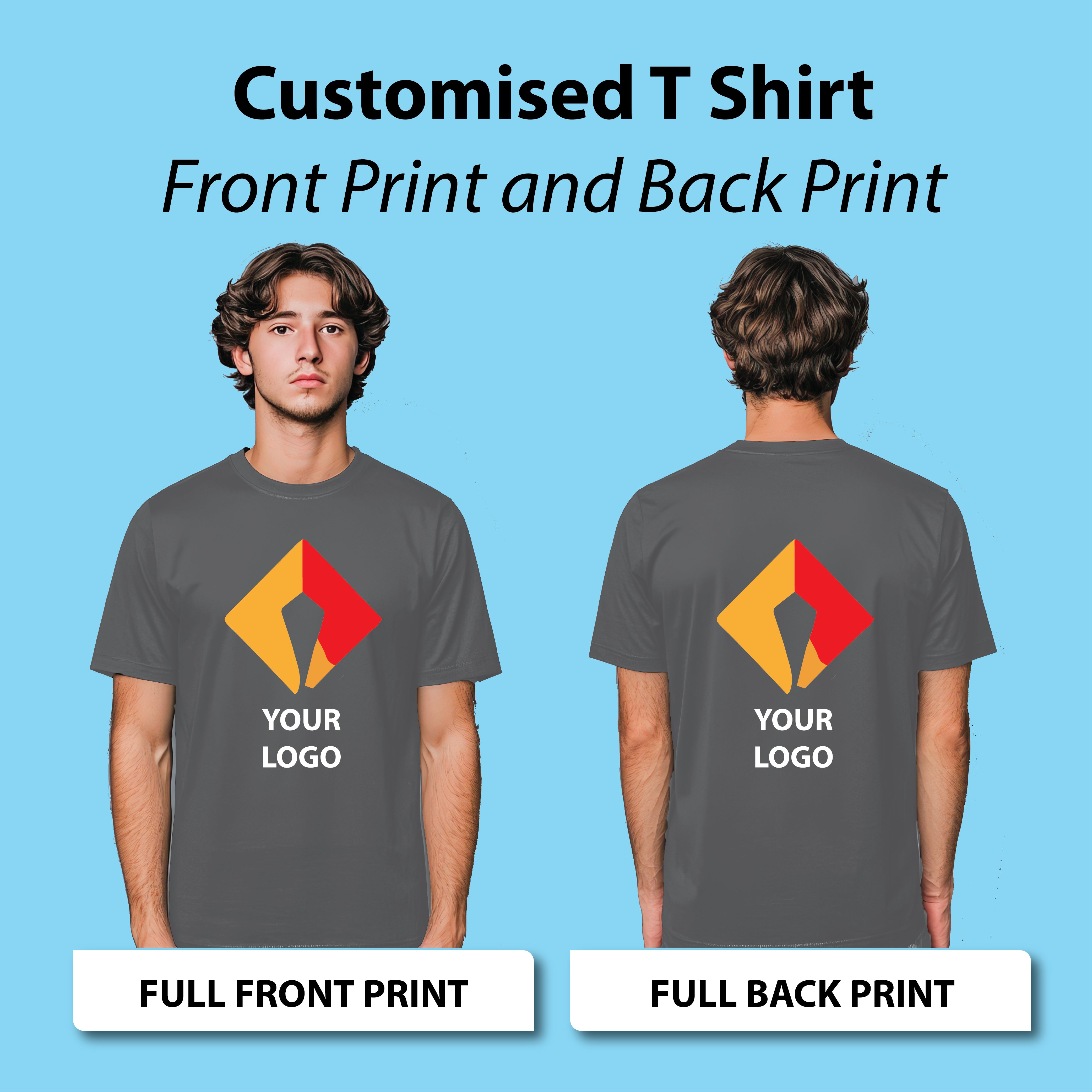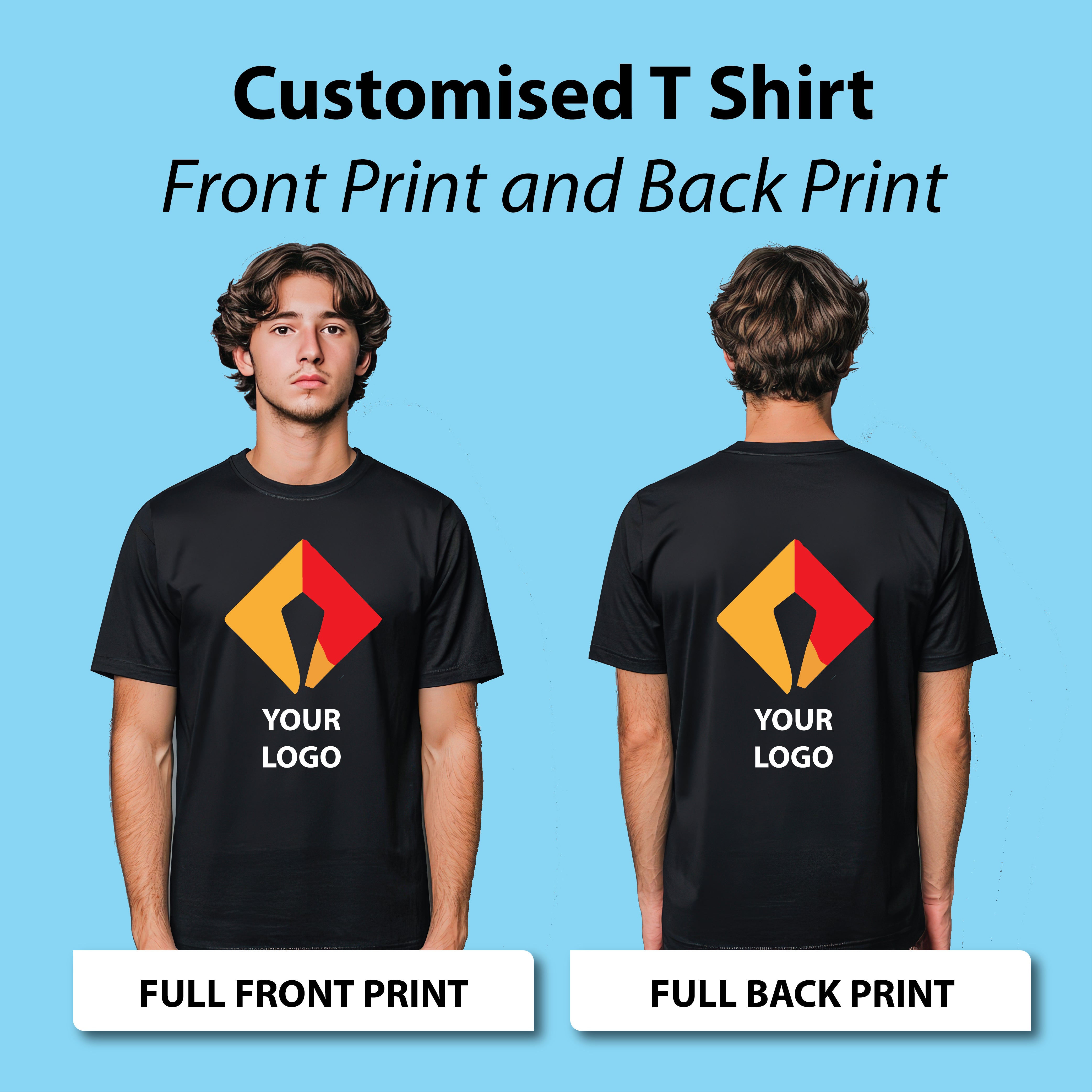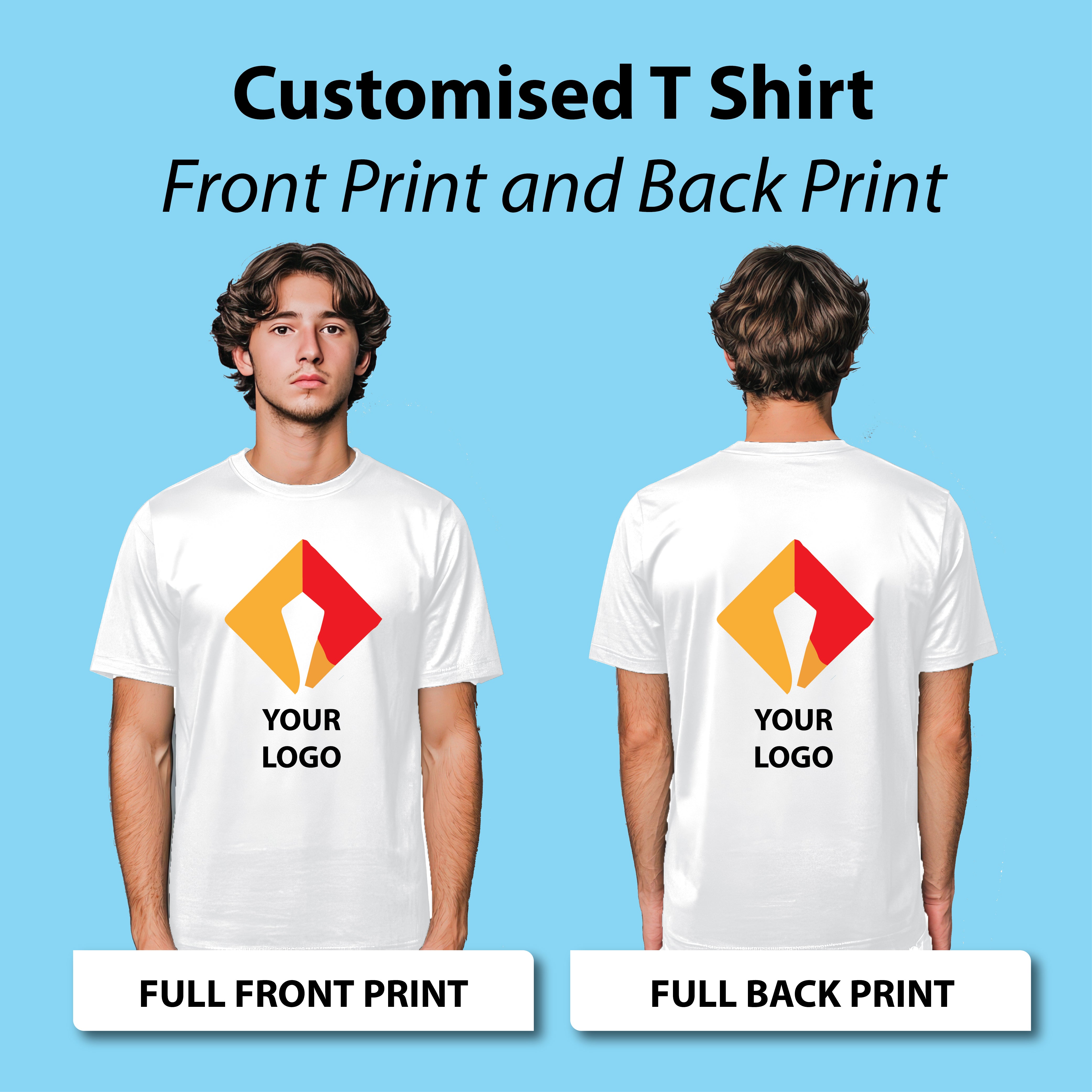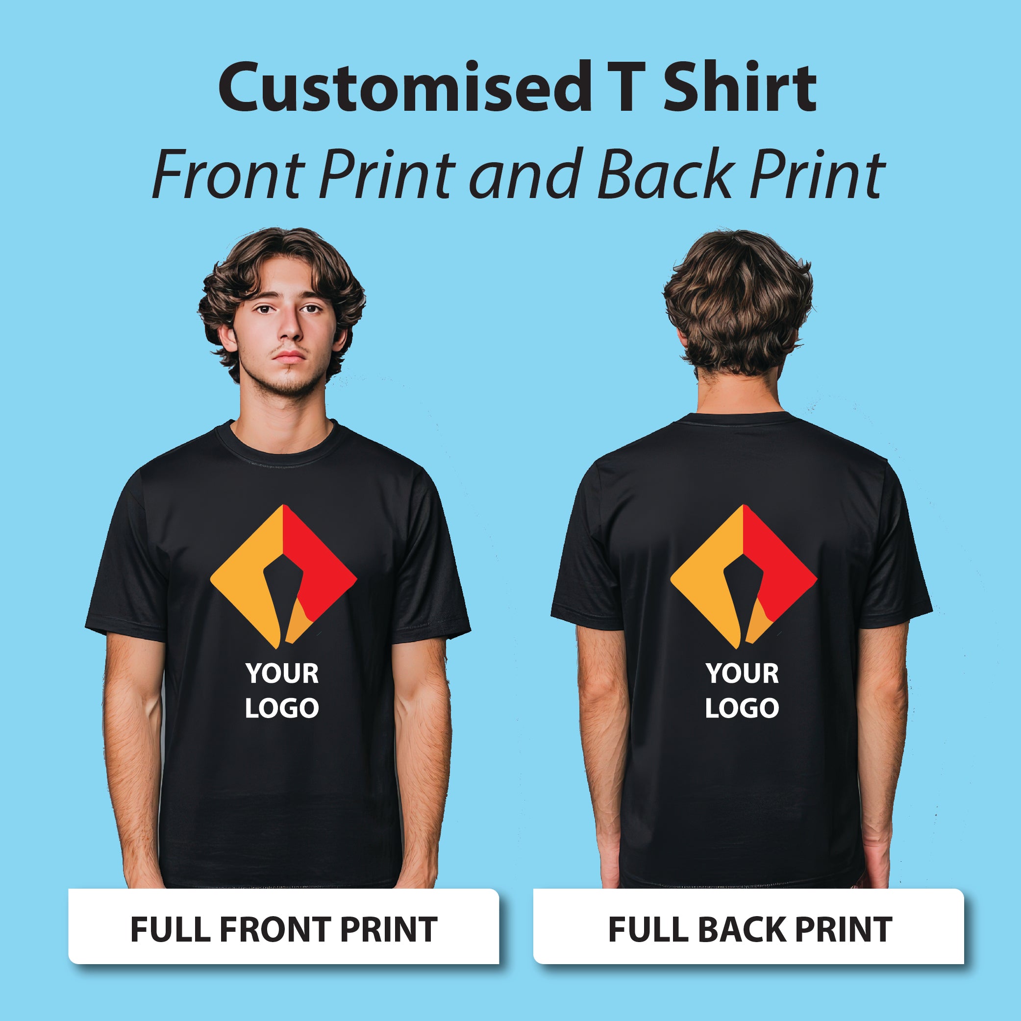 You can personalise by uploading a photo, a design you may already have, or simply have personalised text on your t shirts by entering the text in the notes box.